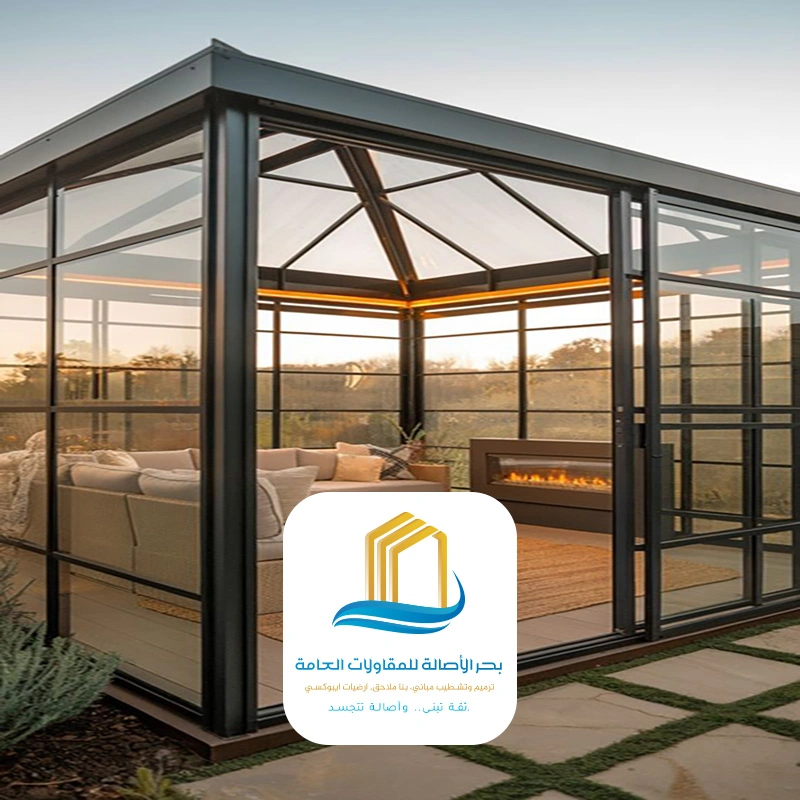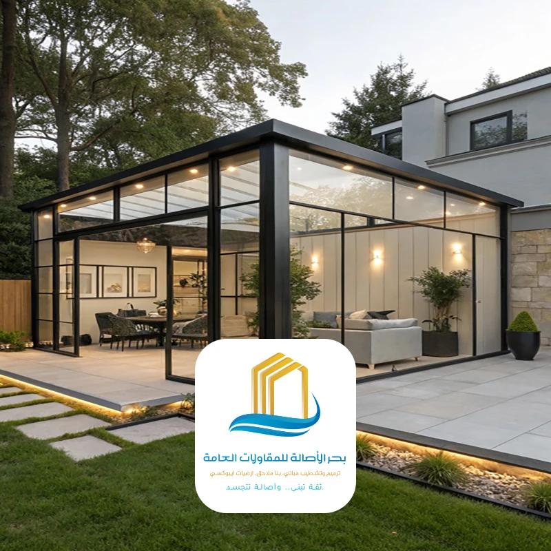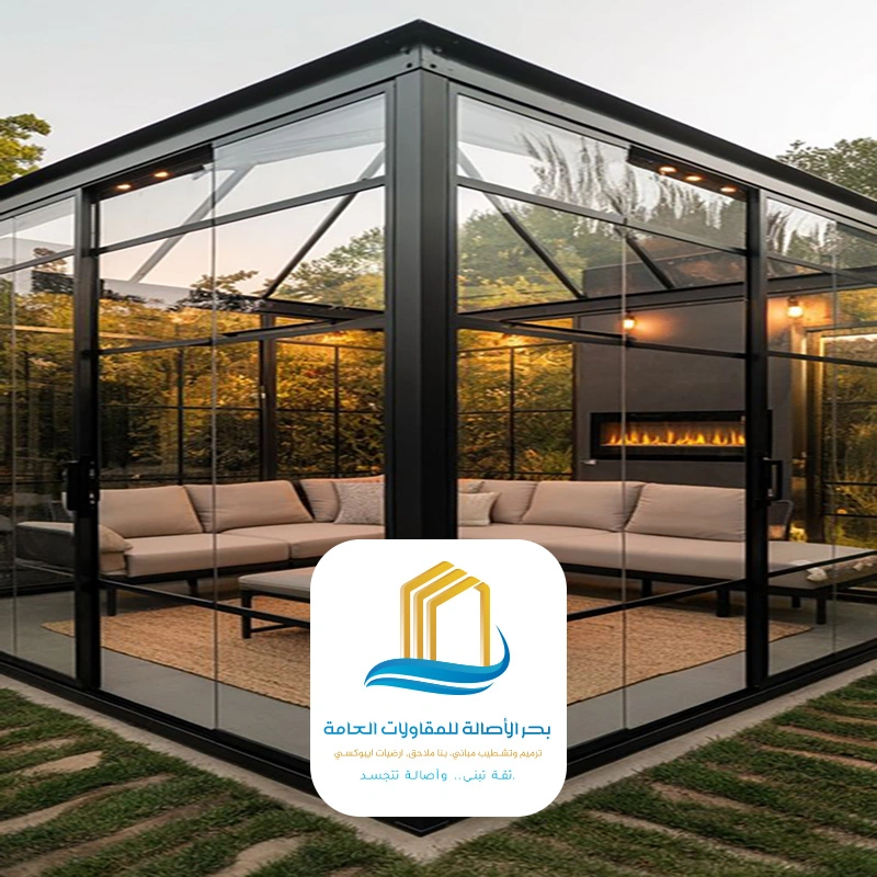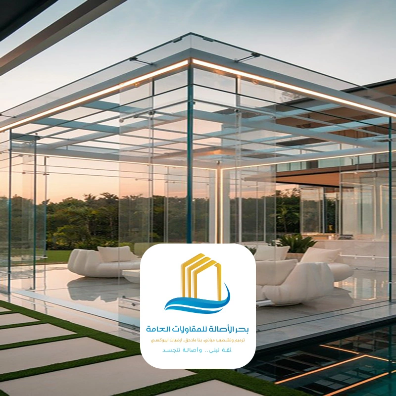 أن بناء غرفة زجاجية حيث تلتقي متانة الهندسة بسحر الشفافية تكتمل مع فريق بحر الأصالة للمقاولات العامة !